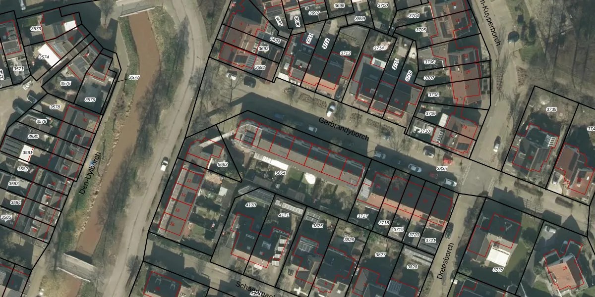 Het perceel waarop Gerbrandyborch 7 staat heeft een oppervlakte van 1691 m². Dit is een zeer groot perceel. De perceeloppervlakte wordt geregistreerd door het Kadaster. Gedetailleerde informatie over de maten van dit perceel kunt u vinden in het rapport Kadastrale kaart met maatvoering van Gerbrandyborch 7.