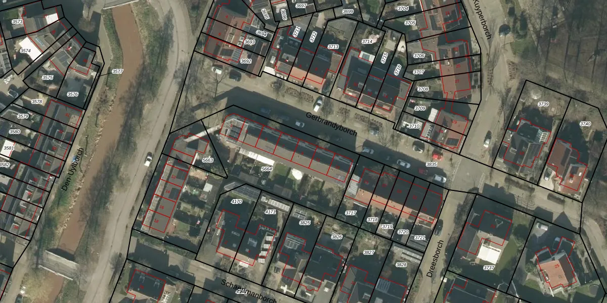 Het perceel waarop Gerbrandyborch 9 staat heeft een oppervlakte van 1691 m². Dit is een zeer groot perceel. De perceeloppervlakte wordt geregistreerd door het Kadaster. Gedetailleerde informatie over de maten van dit perceel kunt u vinden in het rapport Kadastrale kaart met maatvoering van Gerbrandyborch 9.