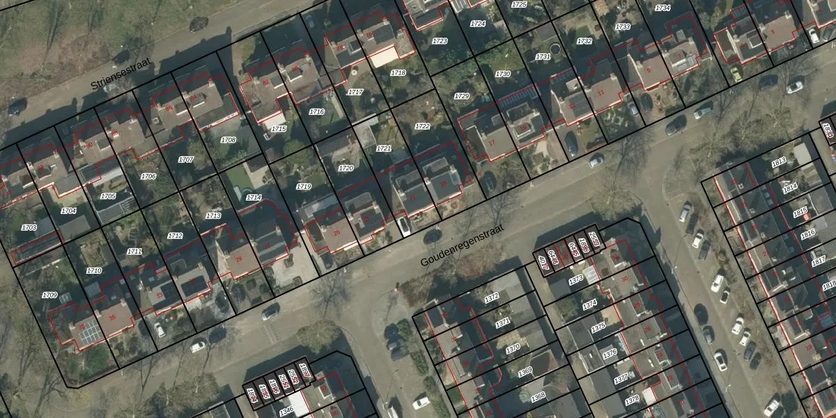Het perceel waarop Goudenregenstraat 21 staat heeft een oppervlakte van 300 m². Dit is een groot perceel. De perceeloppervlakte wordt geregistreerd door het Kadaster. Gedetailleerde informatie over de maten van dit perceel kunt u vinden in het rapport Kadastrale kaart met maatvoering van Goudenregenstraat 21.