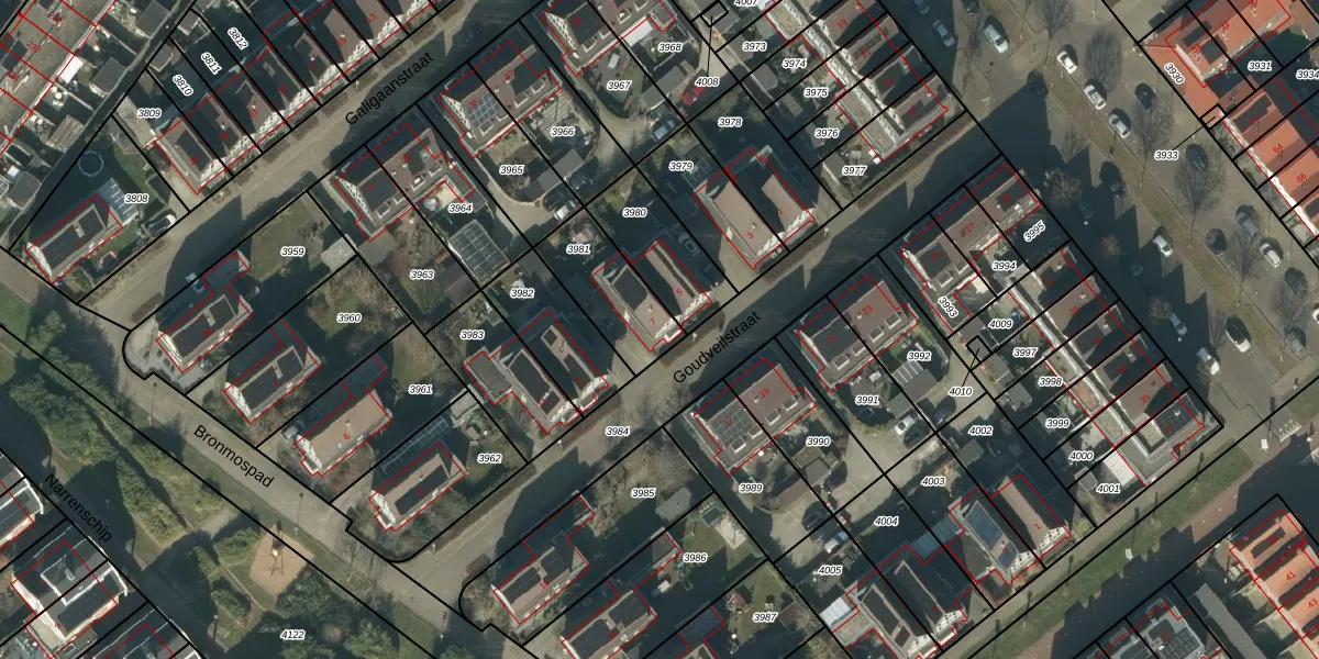 Het perceel waarop Goudveilstraat 7 staat heeft een oppervlakte van 251 m². Dit is een middelgroot perceel. De perceeloppervlakte wordt geregistreerd door het Kadaster. Gedetailleerde informatie over de maten van dit perceel kunt u vinden in het rapport Kadastrale kaart met maatvoering van Goudveilstraat 7.