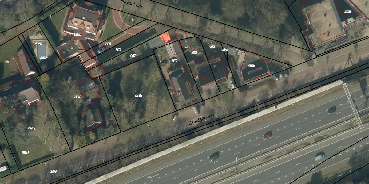 Het perceel waarop Graafsebaan 100 staat heeft een oppervlakte van 545 m². Dit is een groot perceel. De perceeloppervlakte wordt geregistreerd door het Kadaster. Gedetailleerde informatie over de maten van dit perceel kunt u vinden in het rapport Kadastrale kaart met maatvoering van Graafsebaan 100.