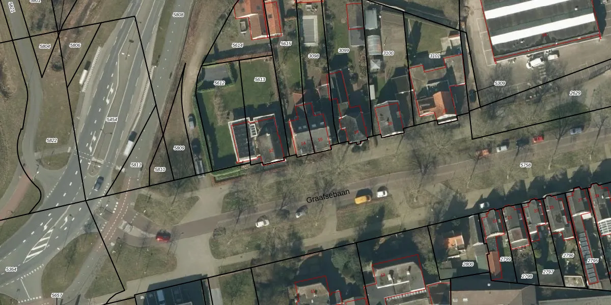 Het perceel waarop Graafsebaan 14 staat heeft een oppervlakte van 542 m². Dit is een groot perceel. De perceeloppervlakte wordt geregistreerd door het Kadaster. Gedetailleerde informatie over de maten van dit perceel kunt u vinden in het rapport Kadastrale kaart met maatvoering van Graafsebaan 14.