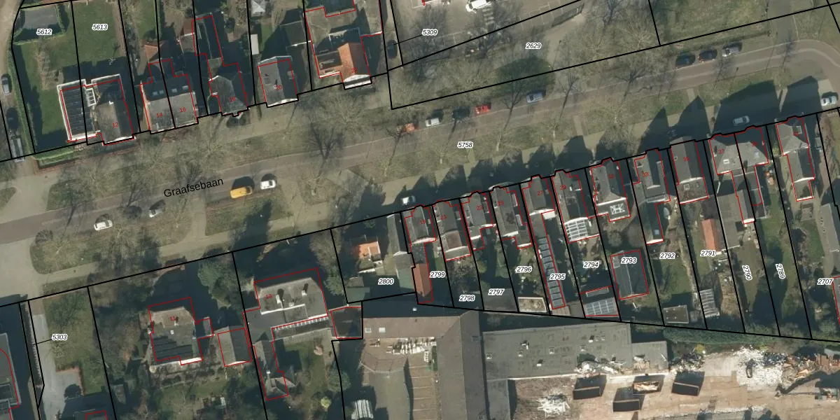 Het perceel waarop Graafsebaan 19 staat heeft een oppervlakte van 190 m². Dit is een middelgroot perceel. De perceeloppervlakte wordt geregistreerd door het Kadaster. Gedetailleerde informatie over de maten van dit perceel kunt u vinden in het rapport Kadastrale kaart met maatvoering van Graafsebaan 19.