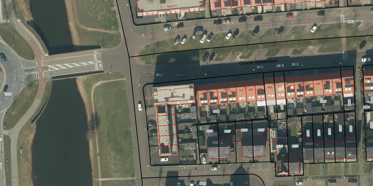 Groote Wielenlaan 430 is gelegen op kadastraal perceel RML00H6004. Deze kadastrale aanduiding is uniek en wordt gebruikt door het Kadaster om eigendomsrechten en andere zakelijke rechten vast te leggen. Het perceel maakt onderdeel uit van de kadastrale gemeente Rosmalen.