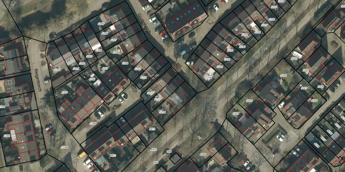Gebruik de zoekbalk of klik op een perceel voor informatie over de adressen binnen dit perceel.