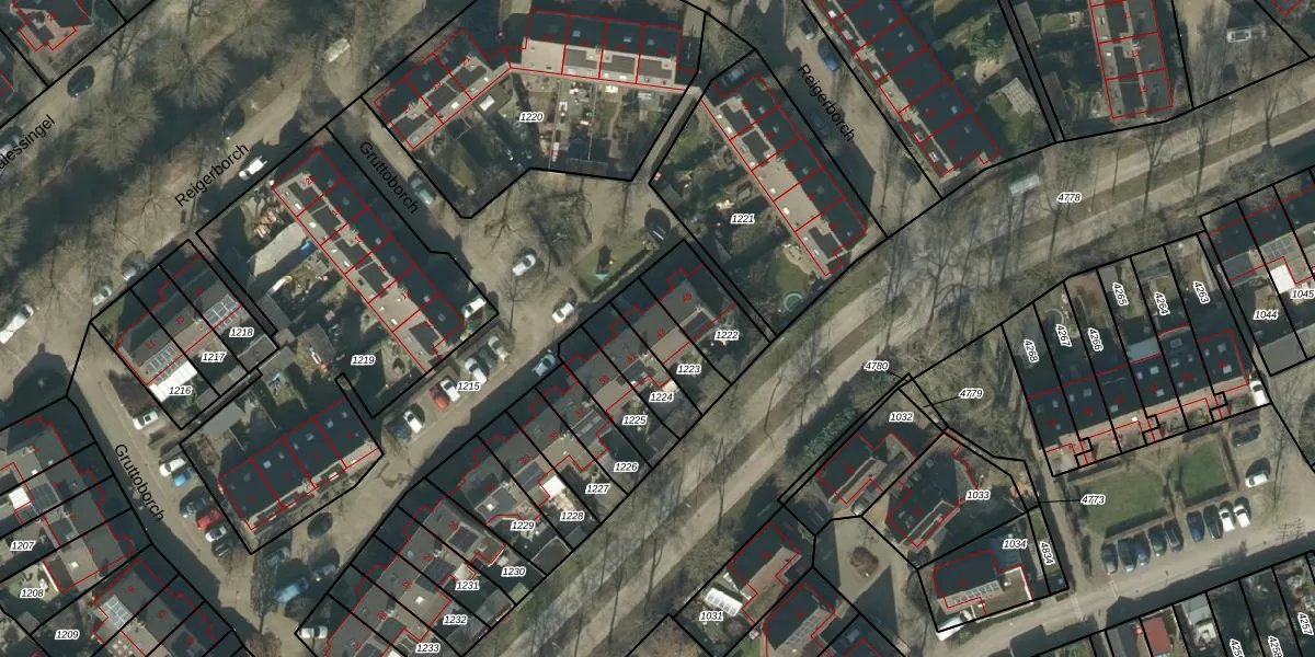 Gruttoborch 43 is gelegen op kadastraal perceel RML00I1223. Deze kadastrale aanduiding is uniek en wordt gebruikt door het Kadaster om eigendomsrechten en andere zakelijke rechten vast te leggen. Het perceel maakt onderdeel uit van de kadastrale gemeente Rosmalen.