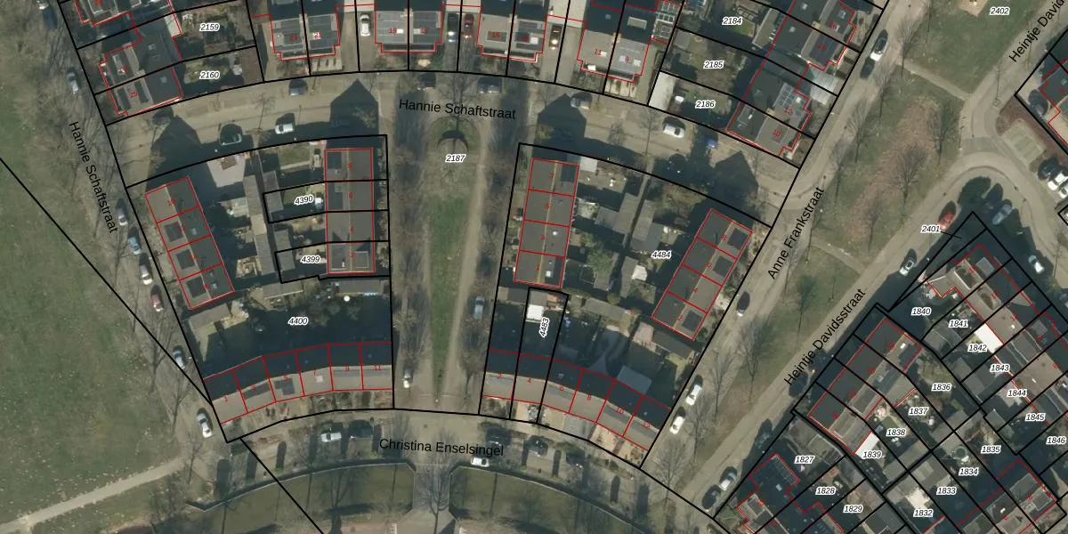 Het perceel waarop Hannie Schaftstraat 1 staat heeft een oppervlakte van 1948 m². Dit is een zeer groot perceel. De perceeloppervlakte wordt geregistreerd door het Kadaster. Gedetailleerde informatie over de maten van dit perceel kunt u vinden in het rapport Kadastrale kaart met maatvoering van Hannie Schaftstraat 1.