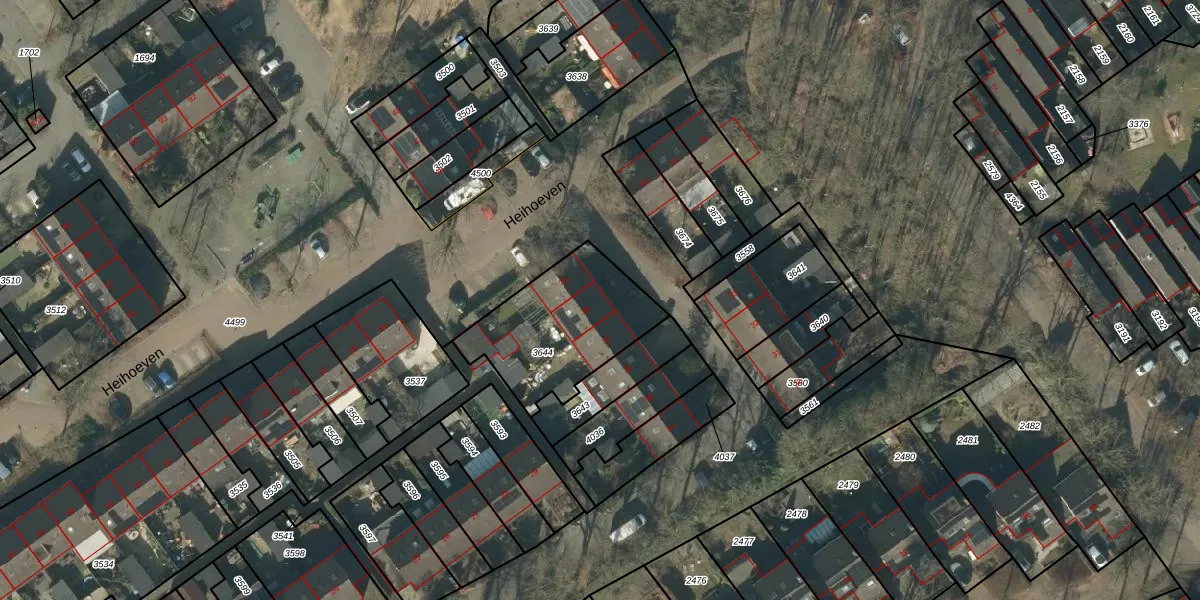 Het perceel waarop Heihoeven 38 staat heeft een oppervlakte van 502 m². Dit is een groot perceel. De perceeloppervlakte wordt geregistreerd door het Kadaster. Gedetailleerde informatie over de maten van dit perceel kunt u vinden in het rapport Kadastrale kaart met maatvoering van Heihoeven 38.