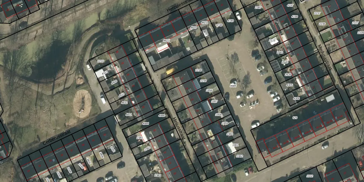 Gebruik de zoekbalk of klik op een perceel voor informatie over de adressen binnen dit perceel.