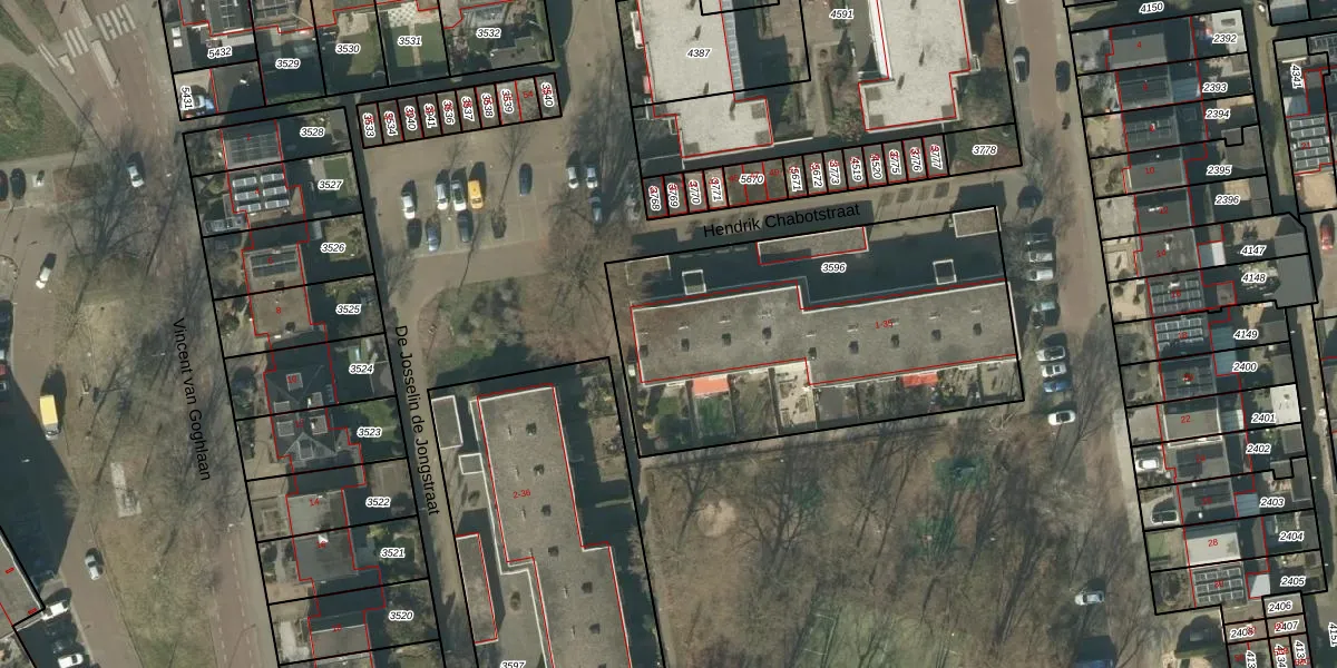 Het perceel waarop Hendrik Chabotstraat 15 staat heeft een oppervlakte van 1723 m². Dit is een zeer groot perceel. De perceeloppervlakte wordt geregistreerd door het Kadaster. Gedetailleerde informatie over de maten van dit perceel kunt u vinden in het rapport Kadastrale kaart met maatvoering van Hendrik Chabotstraat 15.