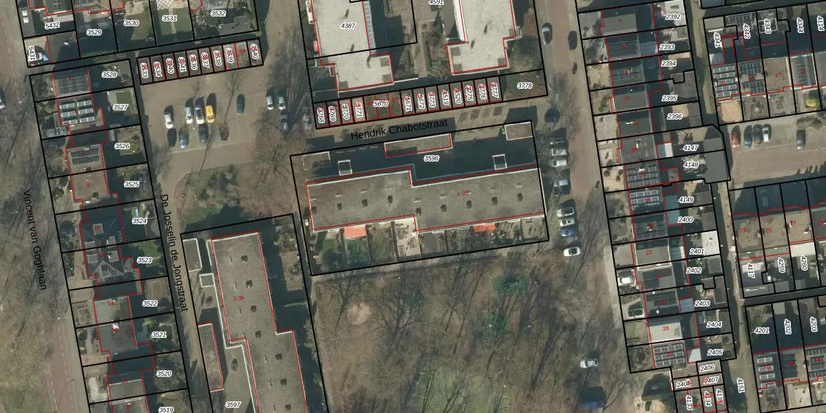 Het perceel waarop Hendrik Chabotstraat 25 staat heeft een oppervlakte van 1723 m². Dit is een zeer groot perceel. De perceeloppervlakte wordt geregistreerd door het Kadaster. Gedetailleerde informatie over de maten van dit perceel kunt u vinden in het rapport Kadastrale kaart met maatvoering van Hendrik Chabotstraat 25.