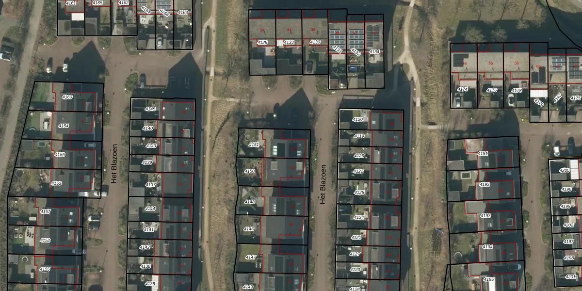 Gebruik de zoekbalk of klik op een perceel voor informatie over de adressen binnen dit perceel.