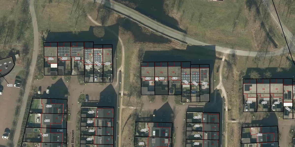 Gebruik de zoekbalk of klik op een perceel voor informatie over de adressen binnen dit perceel.