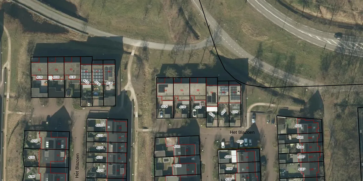 Gebruik de zoekbalk of klik op een perceel voor informatie over de adressen binnen dit perceel.