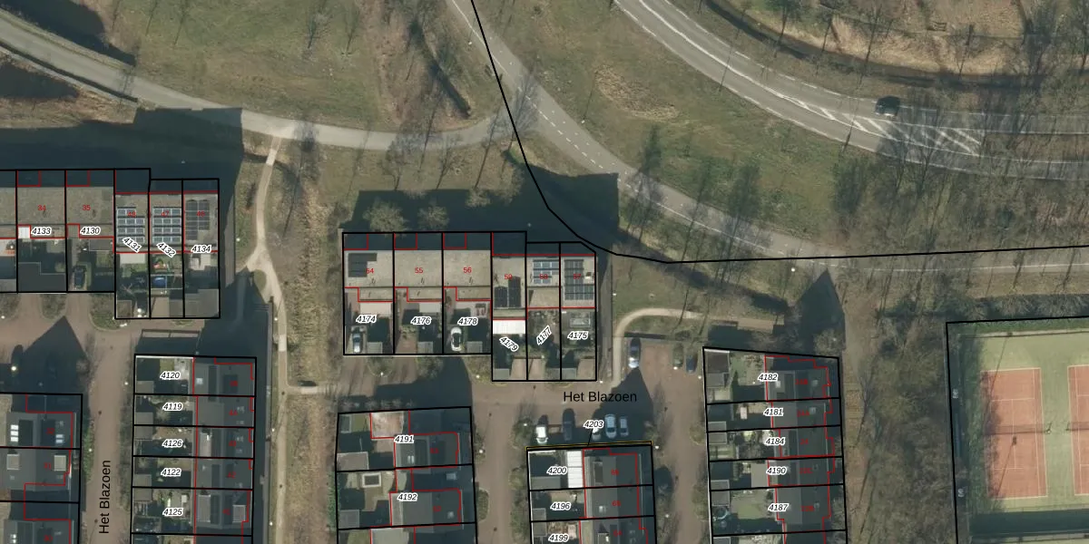 Het perceel waarop Het Blazoen 58 staat heeft een oppervlakte van 159 m². Dit is een middelgroot perceel. De perceeloppervlakte wordt geregistreerd door het Kadaster. Gedetailleerde informatie over de maten van dit perceel kunt u vinden in het rapport Kadastrale kaart met maatvoering van Het Blazoen 58.