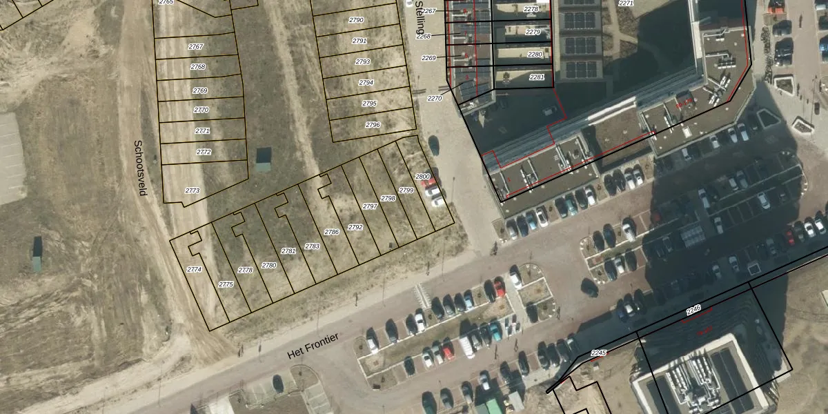 Het Frontier 74 is gelegen op kadastraal perceel HTG00U2799. Deze kadastrale aanduiding is uniek en wordt gebruikt door het Kadaster om eigendomsrechten en andere zakelijke rechten vast te leggen. Het perceel maakt onderdeel uit van de kadastrale gemeente 's-Hertogenbosch.