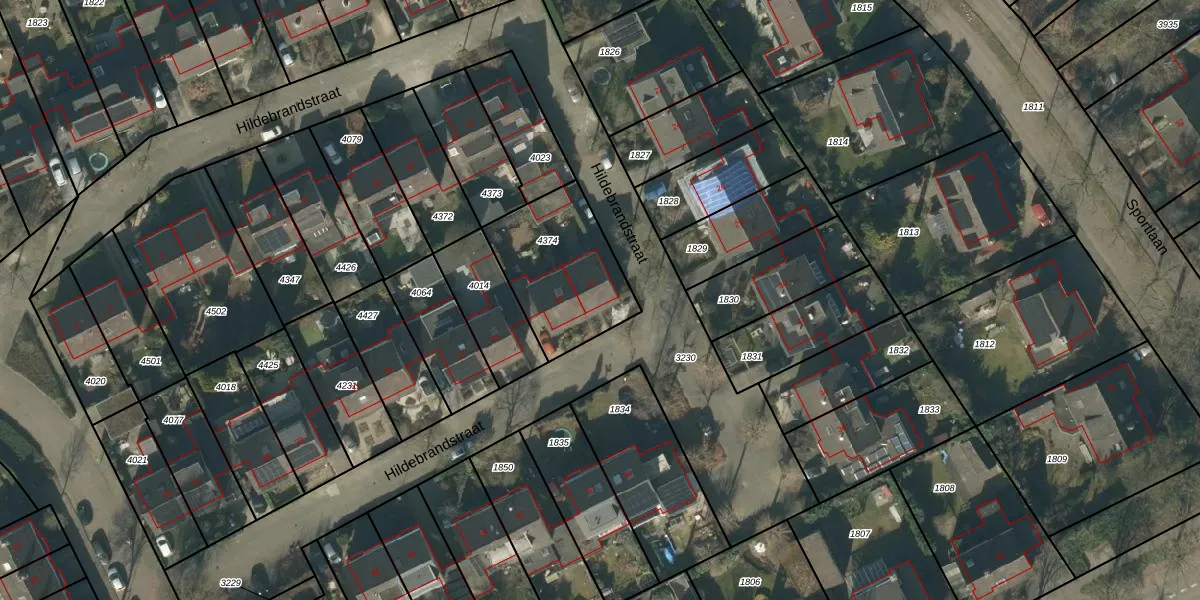 Het perceel waarop Hildebrandstraat 21 staat heeft een oppervlakte van 440 m². Dit is een groot perceel. De perceeloppervlakte wordt geregistreerd door het Kadaster. Gedetailleerde informatie over de maten van dit perceel kunt u vinden in het rapport Kadastrale kaart met maatvoering van Hildebrandstraat 21.