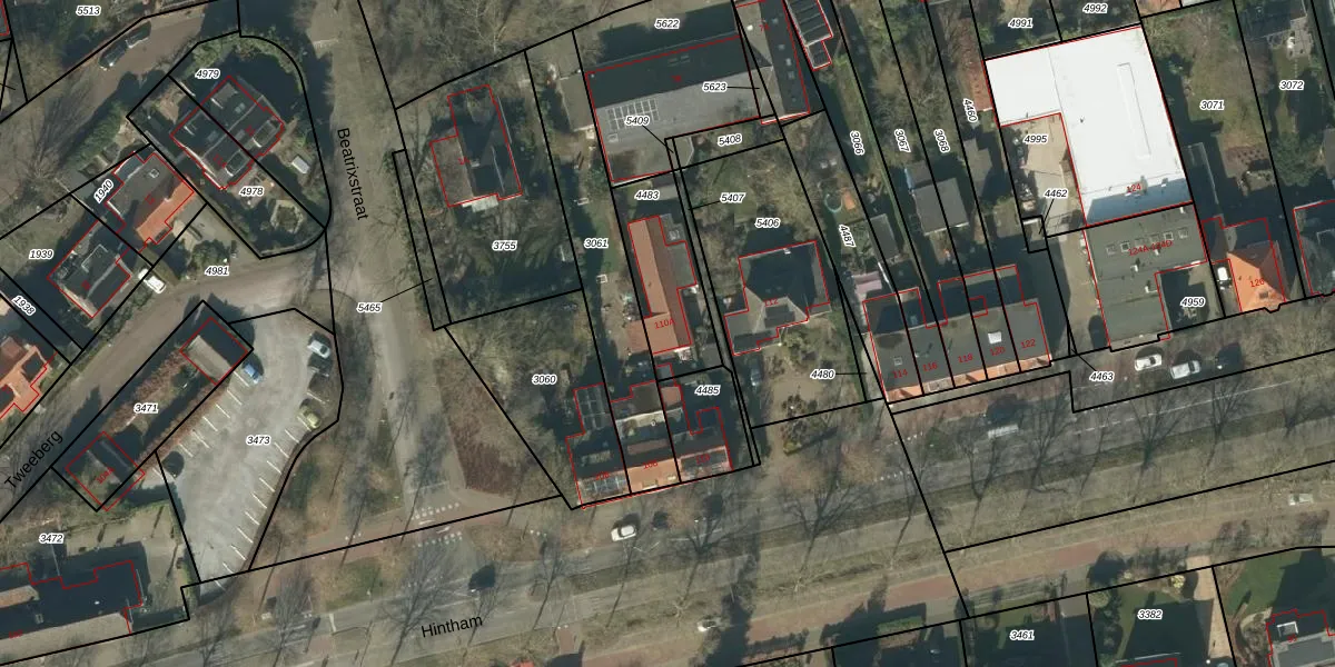 Gebruik de zoekbalk of klik op een perceel voor informatie over de adressen binnen dit perceel.