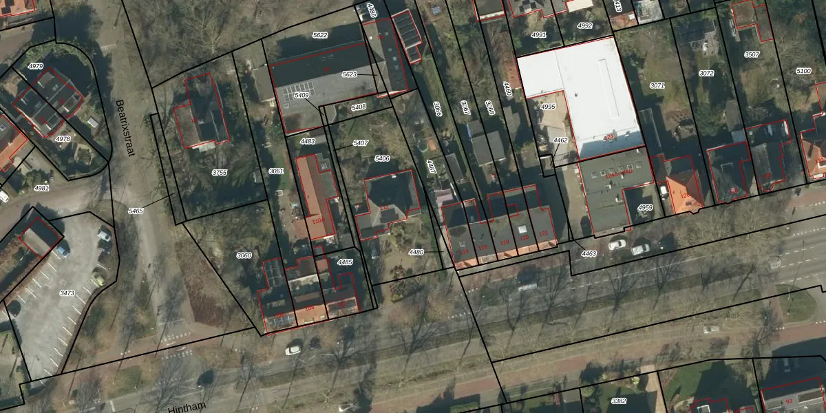 Hintham 112-A is gelegen op kadastraal perceel RML00E5406. Deze kadastrale aanduiding is uniek en wordt gebruikt door het Kadaster om eigendomsrechten en andere zakelijke rechten vast te leggen. Het perceel maakt onderdeel uit van de kadastrale gemeente Rosmalen.