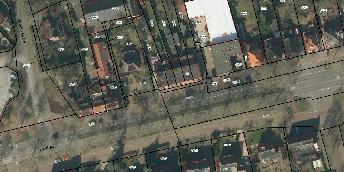 Het perceel waarop Hintham 116 staat heeft een oppervlakte van 392 m². Dit is een groot perceel. De perceeloppervlakte wordt geregistreerd door het Kadaster. Gedetailleerde informatie over de maten van dit perceel kunt u vinden in het rapport Kadastrale kaart met maatvoering van Hintham 116.