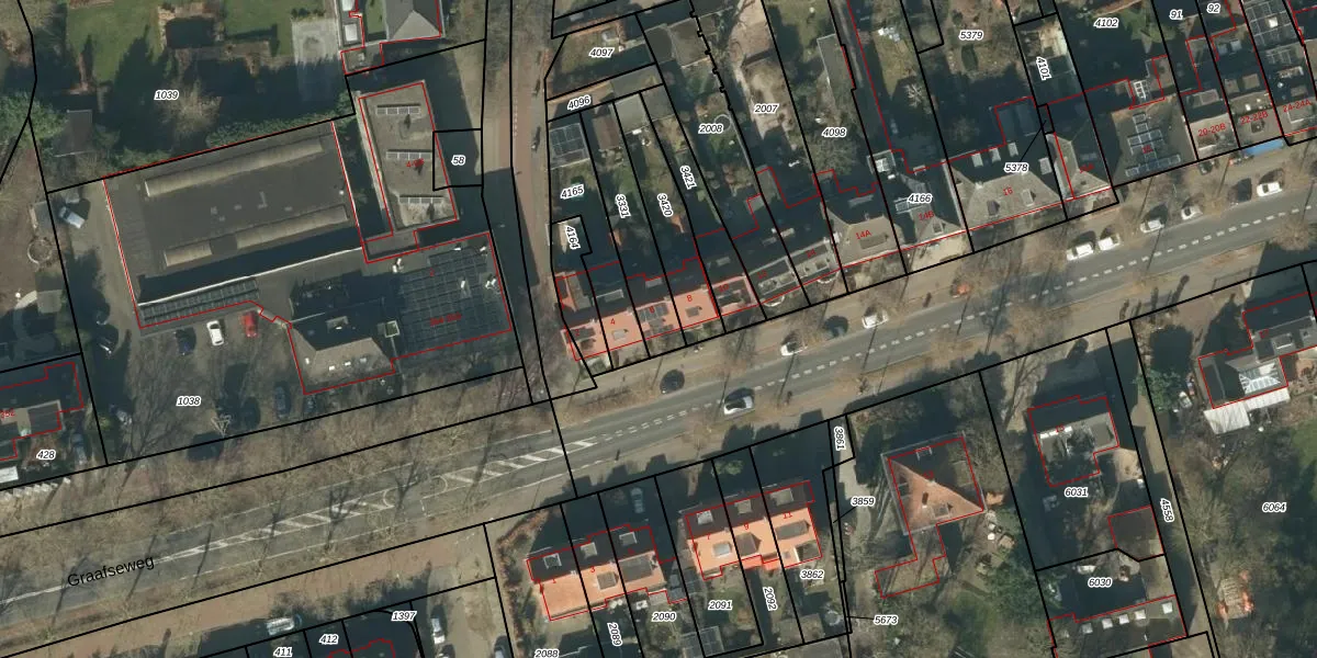 Gebruik de zoekbalk of klik op een perceel voor informatie over de adressen binnen dit perceel.