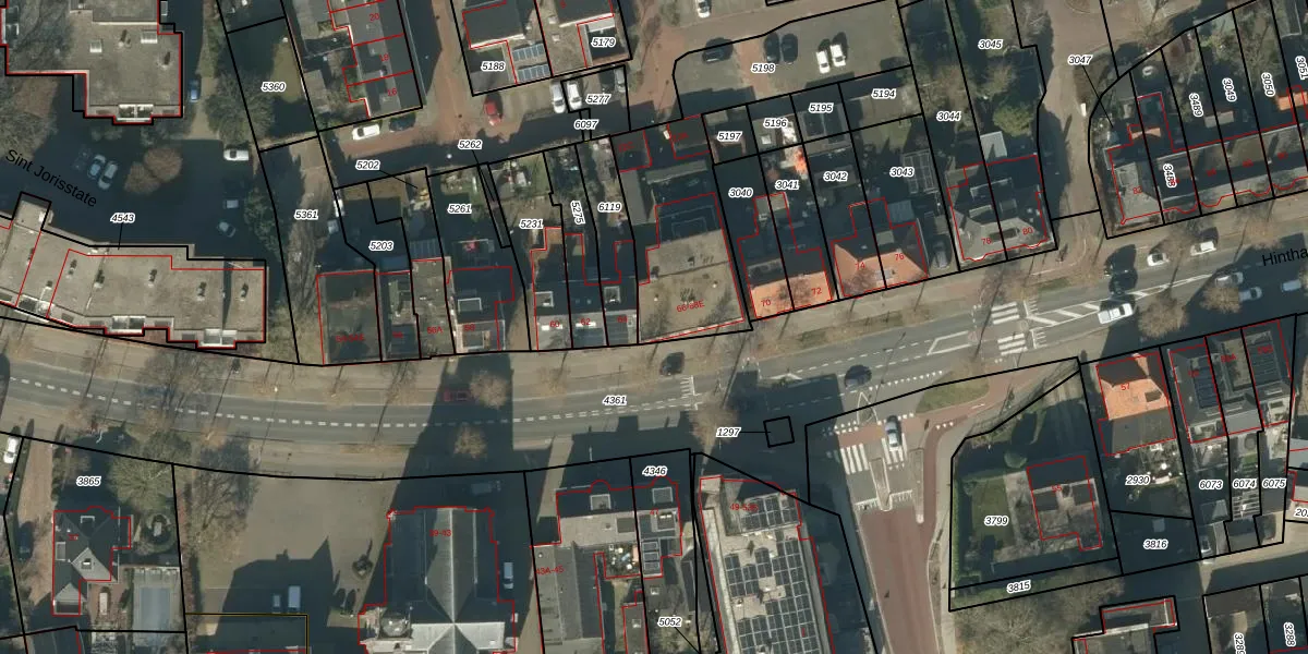 Het perceel waarop Hintham 66 staat heeft een oppervlakte van 868 m². Dit is een groot perceel. De perceeloppervlakte wordt geregistreerd door het Kadaster. Gedetailleerde informatie over de maten van dit perceel kunt u vinden in het rapport Kadastrale kaart met maatvoering van Hintham 66.