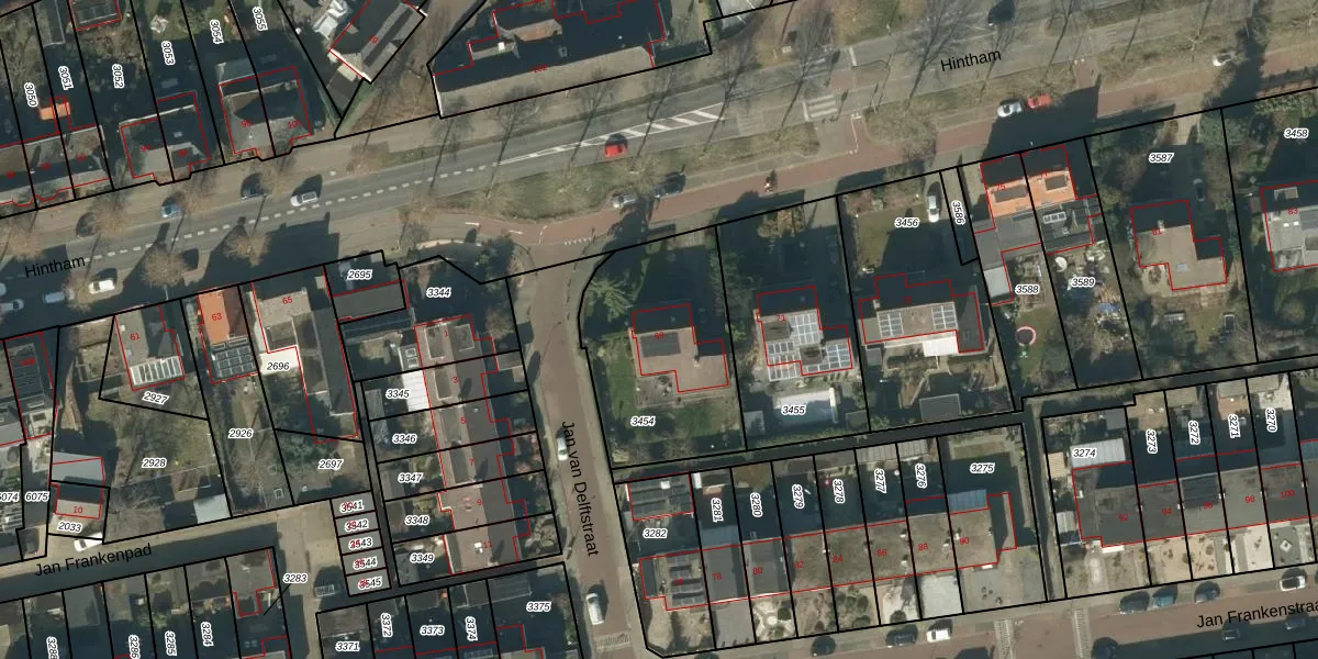 Het perceel waarop Hintham 69 staat heeft een oppervlakte van 710 m². Dit is een groot perceel. De perceeloppervlakte wordt geregistreerd door het Kadaster. Gedetailleerde informatie over de maten van dit perceel kunt u vinden in het rapport Kadastrale kaart met maatvoering van Hintham 69.