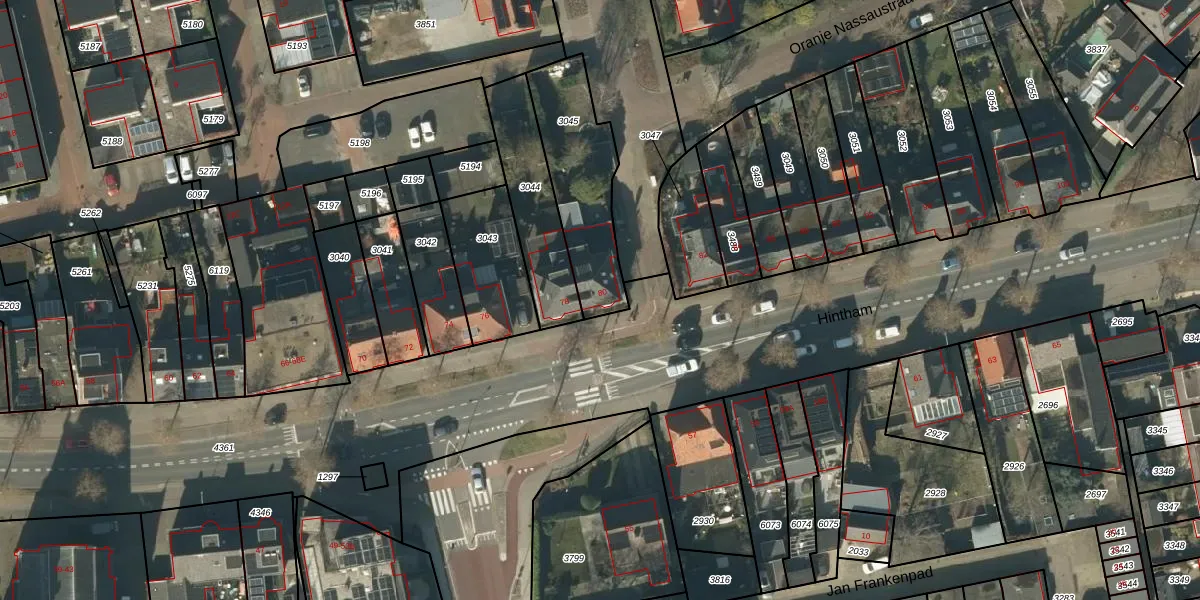 Het perceel waarop Hintham 80 staat heeft een oppervlakte van 392 m². Dit is een groot perceel. De perceeloppervlakte wordt geregistreerd door het Kadaster. Gedetailleerde informatie over de maten van dit perceel kunt u vinden in het rapport Kadastrale kaart met maatvoering van Hintham 80.