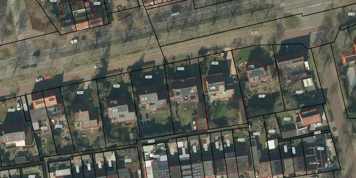 Het perceel waarop Hintham 87 staat heeft een oppervlakte van 800 m². Dit is een groot perceel. De perceeloppervlakte wordt geregistreerd door het Kadaster. Gedetailleerde informatie over de maten van dit perceel kunt u vinden in het rapport Kadastrale kaart met maatvoering van Hintham 87.