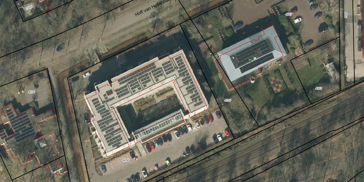 Het perceel waarop Hoff van Hollantlaan 6-A-13 staat heeft een oppervlakte van 5370 m². Dit is een zeer groot perceel. De perceeloppervlakte wordt geregistreerd door het Kadaster. Gedetailleerde informatie over de maten van dit perceel kunt u vinden in het rapport Kadastrale kaart met maatvoering van Hoff van Hollantlaan 6-A-13.