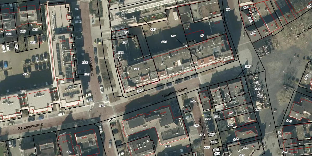 Het perceel waarop Hoogstraat 2-F staat heeft een oppervlakte van 680 m². Dit is een groot perceel. De perceeloppervlakte wordt geregistreerd door het Kadaster. Gedetailleerde informatie over de maten van dit perceel kunt u vinden in het rapport Kadastrale kaart met maatvoering van Hoogstraat 2-F.