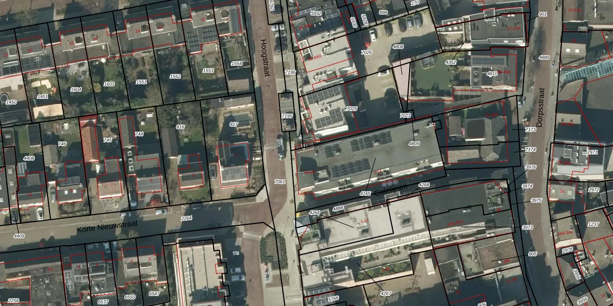 Het perceel waarop Hoogstraat 42 staat heeft een oppervlakte van 980 m². Dit is een groot perceel. De perceeloppervlakte wordt geregistreerd door het Kadaster. Gedetailleerde informatie over de maten van dit perceel kunt u vinden in het rapport Kadastrale kaart met maatvoering van Hoogstraat 42.