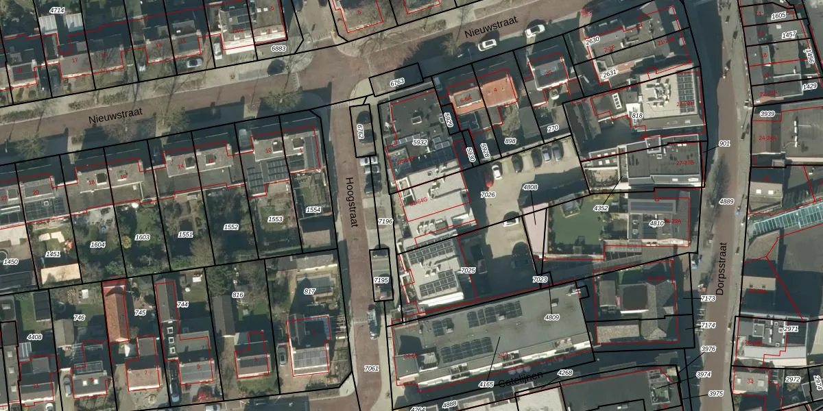 Het perceel waarop Hoogstraat 62-B staat heeft een oppervlakte van 714 m². Dit is een groot perceel. De perceeloppervlakte wordt geregistreerd door het Kadaster. Gedetailleerde informatie over de maten van dit perceel kunt u vinden in het rapport Kadastrale kaart met maatvoering van Hoogstraat 62-B.