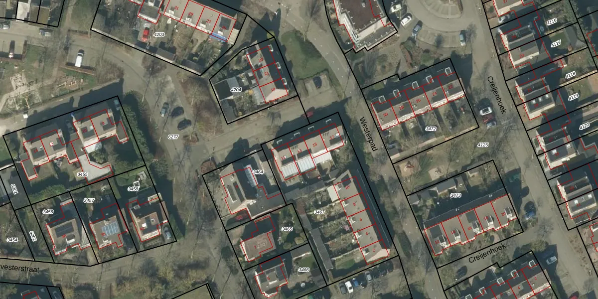 Het perceel waarop Houtvesterstraat 13 staat heeft een oppervlakte van 1396 m². Dit is een zeer groot perceel. De perceeloppervlakte wordt geregistreerd door het Kadaster. Gedetailleerde informatie over de maten van dit perceel kunt u vinden in het rapport Kadastrale kaart met maatvoering van Houtvesterstraat 13.