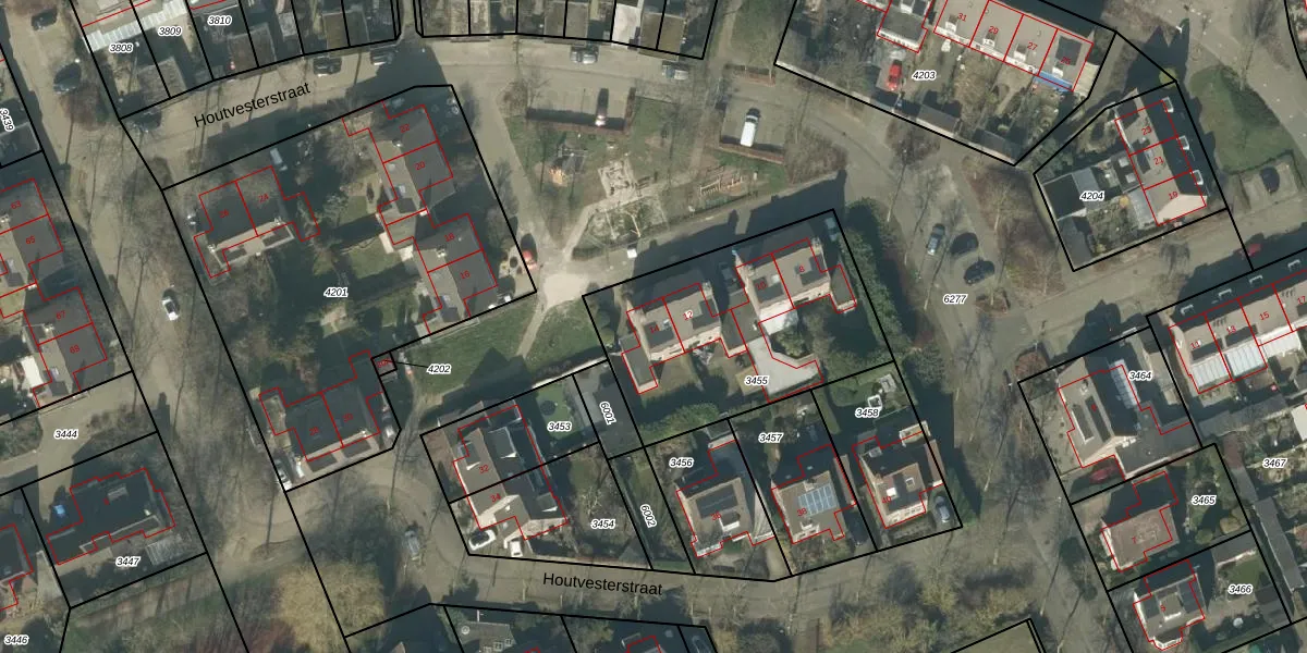 Het perceel waarop Houtvesterstraat 14 staat heeft een oppervlakte van 1012 m². Dit is een zeer groot perceel. De perceeloppervlakte wordt geregistreerd door het Kadaster. Gedetailleerde informatie over de maten van dit perceel kunt u vinden in het rapport Kadastrale kaart met maatvoering van Houtvesterstraat 14.