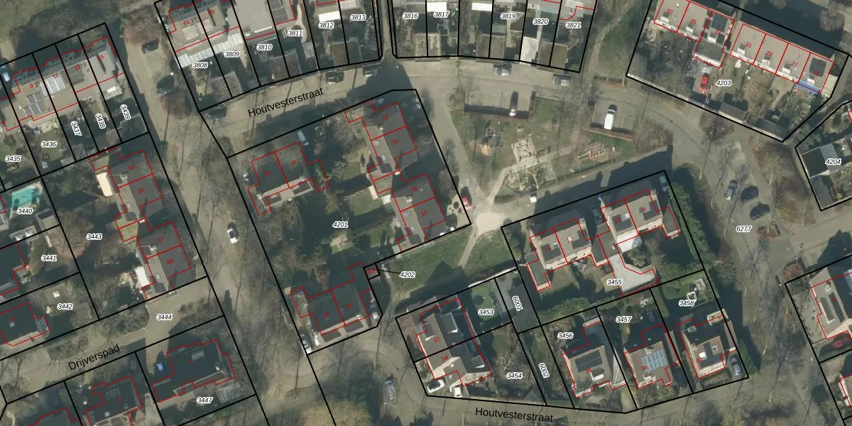 Het perceel waarop Houtvesterstraat 16 staat heeft een oppervlakte van 1971 m². Dit is een zeer groot perceel. De perceeloppervlakte wordt geregistreerd door het Kadaster. Gedetailleerde informatie over de maten van dit perceel kunt u vinden in het rapport Kadastrale kaart met maatvoering van Houtvesterstraat 16.