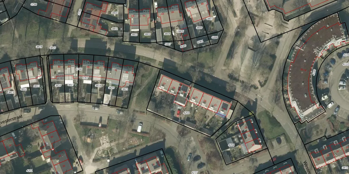 Het perceel waarop Houtvesterstraat 35 staat heeft een oppervlakte van 1131 m². Dit is een zeer groot perceel. De perceeloppervlakte wordt geregistreerd door het Kadaster. Gedetailleerde informatie over de maten van dit perceel kunt u vinden in het rapport Kadastrale kaart met maatvoering van Houtvesterstraat 35.