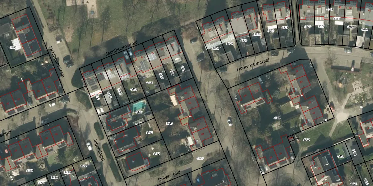 Het perceel waarop Houtvesterstraat 63 staat heeft een oppervlakte van 1000 m². Dit is een zeer groot perceel. De perceeloppervlakte wordt geregistreerd door het Kadaster. Gedetailleerde informatie over de maten van dit perceel kunt u vinden in het rapport Kadastrale kaart met maatvoering van Houtvesterstraat 63.