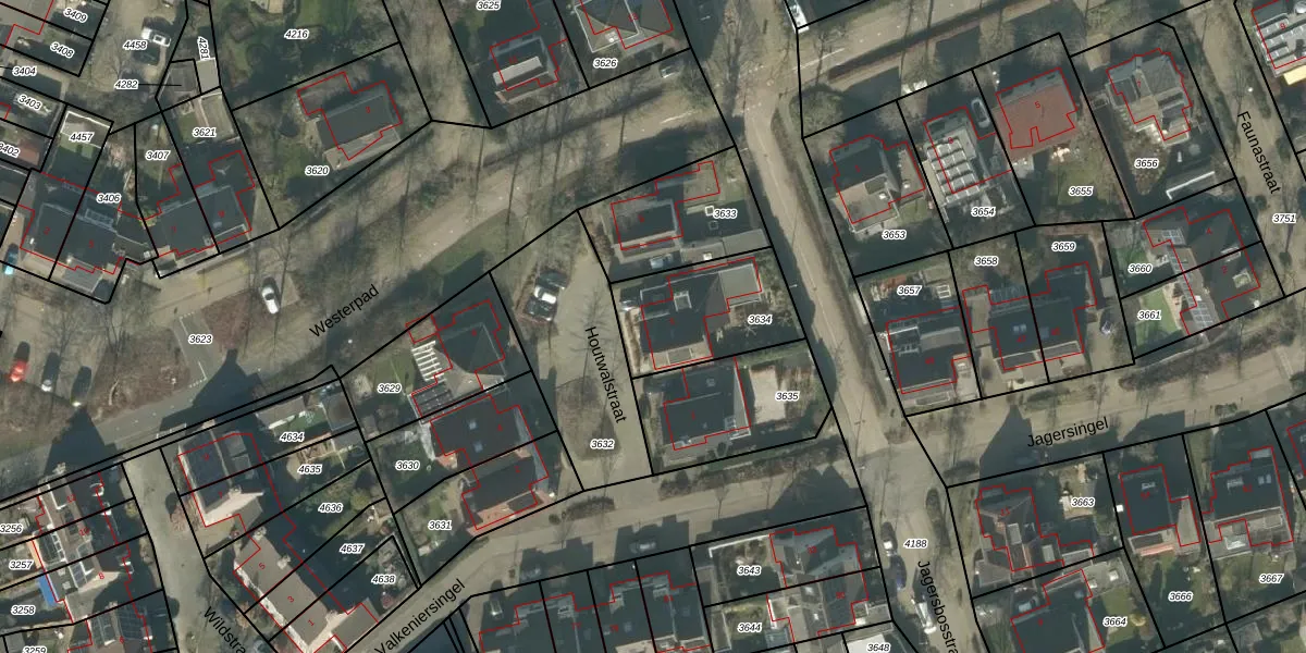Gebruik de zoekbalk of klik op een perceel voor informatie over de adressen binnen dit perceel.