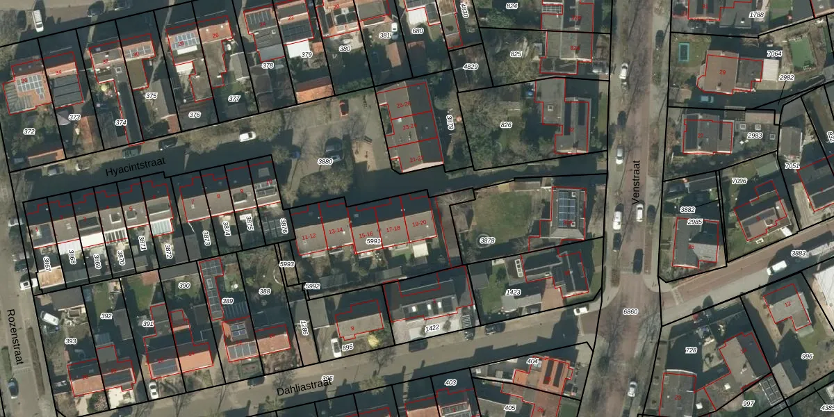 Hyacintstraat 19 is gelegen op kadastraal perceel RML00H5991. Deze kadastrale aanduiding is uniek en wordt gebruikt door het Kadaster om eigendomsrechten en andere zakelijke rechten vast te leggen. Het perceel maakt onderdeel uit van de kadastrale gemeente Rosmalen.
