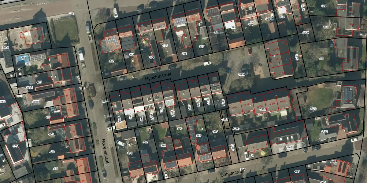 Gebruik de zoekbalk of klik op een perceel voor informatie over de adressen binnen dit perceel.