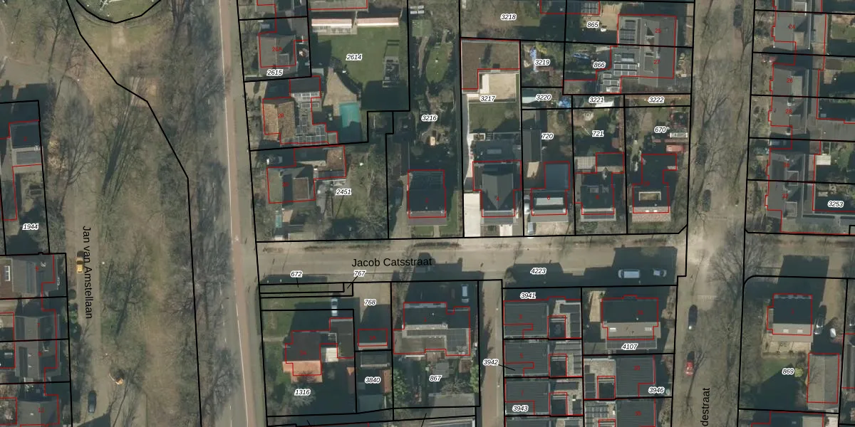 Het perceel waarop Jacob Catsstraat 2 staat heeft een oppervlakte van 847 m². Dit is een groot perceel. De perceeloppervlakte wordt geregistreerd door het Kadaster. Gedetailleerde informatie over de maten van dit perceel kunt u vinden in het rapport Kadastrale kaart met maatvoering van Jacob Catsstraat 2.