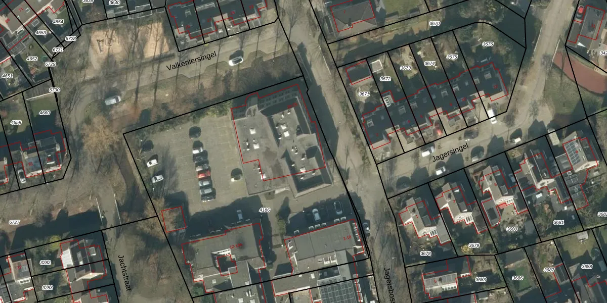 Het perceel waarop Jagersbosstraat 24 staat heeft een oppervlakte van 3735 m². Dit is een zeer groot perceel. De perceeloppervlakte wordt geregistreerd door het Kadaster. Gedetailleerde informatie over de maten van dit perceel kunt u vinden in het rapport Kadastrale kaart met maatvoering van Jagersbosstraat 24.