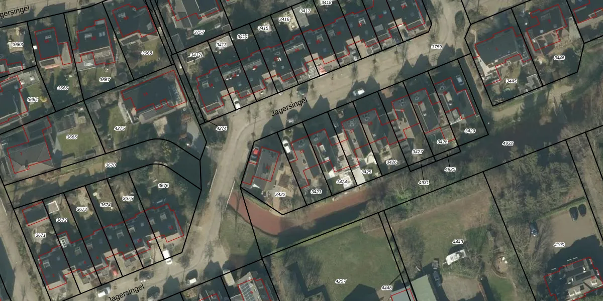 Het perceel waarop Jagersingel 13 staat heeft een oppervlakte van 238 m². Dit is een middelgroot perceel. De perceeloppervlakte wordt geregistreerd door het Kadaster. Gedetailleerde informatie over de maten van dit perceel kunt u vinden in het rapport Kadastrale kaart met maatvoering van Jagersingel 13.