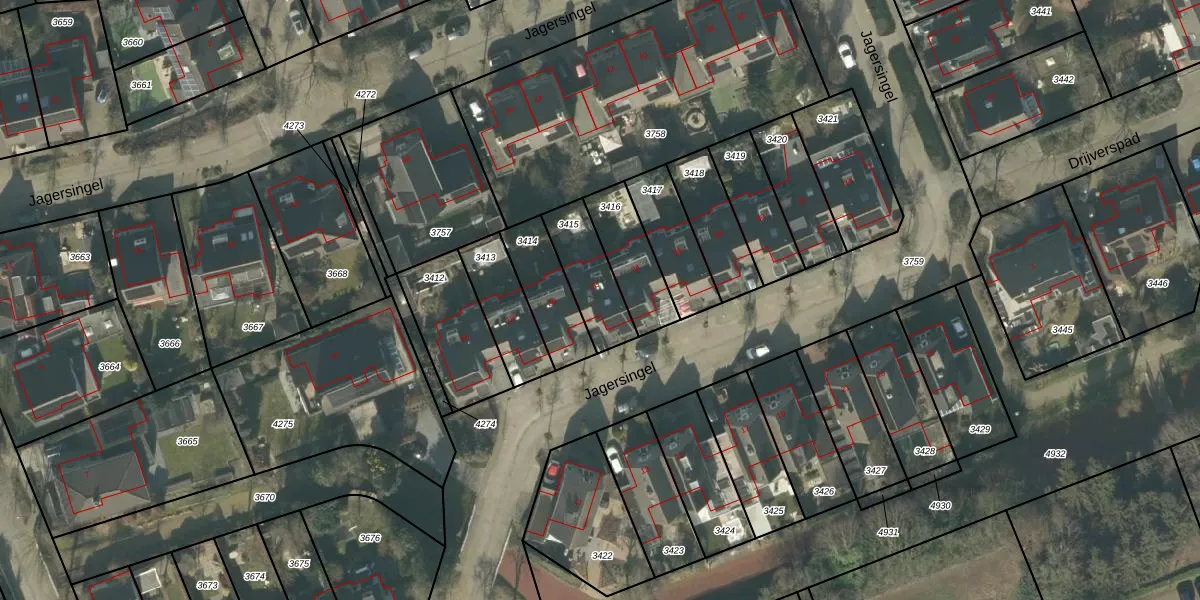 Het perceel waarop Jagersingel 22 staat heeft een oppervlakte van 187 m². Dit is een middelgroot perceel. De perceeloppervlakte wordt geregistreerd door het Kadaster. Gedetailleerde informatie over de maten van dit perceel kunt u vinden in het rapport Kadastrale kaart met maatvoering van Jagersingel 22.