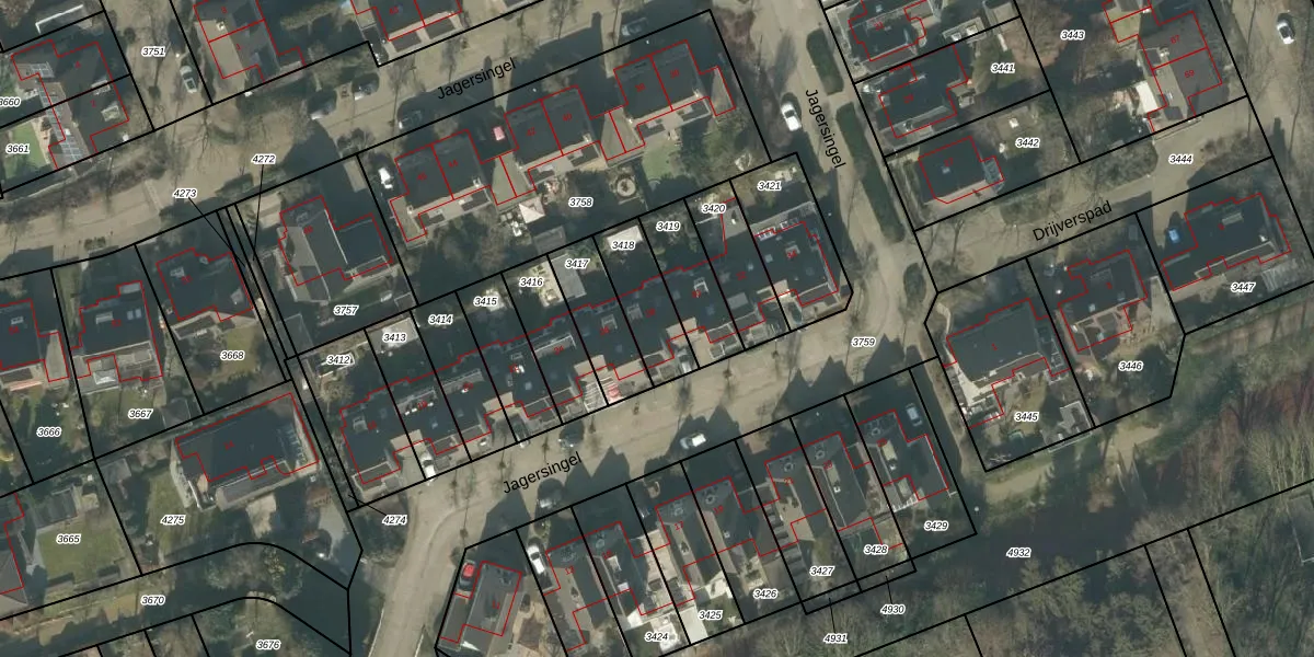 Gebruik de zoekbalk of klik op een perceel voor informatie over de adressen binnen dit perceel.