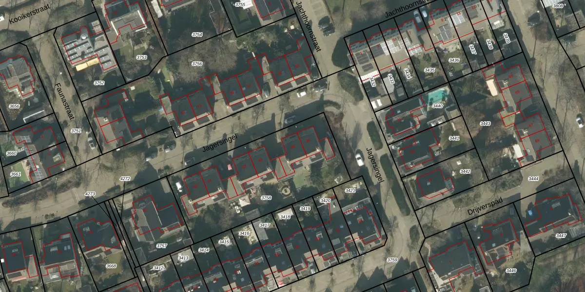 Jagersingel 38 is gelegen op kadastraal perceel RML00H3758. Deze kadastrale aanduiding is uniek en wordt gebruikt door het Kadaster om eigendomsrechten en andere zakelijke rechten vast te leggen. Het perceel maakt onderdeel uit van de kadastrale gemeente Rosmalen.