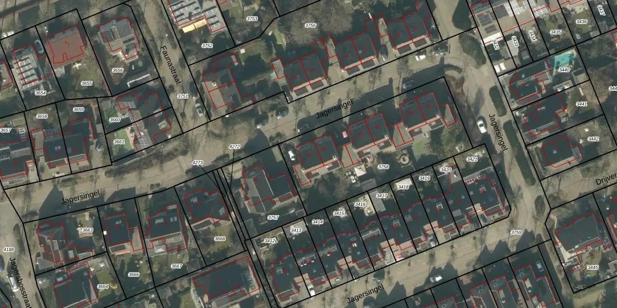 Het perceel waarop Jagersingel 46 staat heeft een oppervlakte van 1453 m². Dit is een zeer groot perceel. De perceeloppervlakte wordt geregistreerd door het Kadaster. Gedetailleerde informatie over de maten van dit perceel kunt u vinden in het rapport Kadastrale kaart met maatvoering van Jagersingel 46.