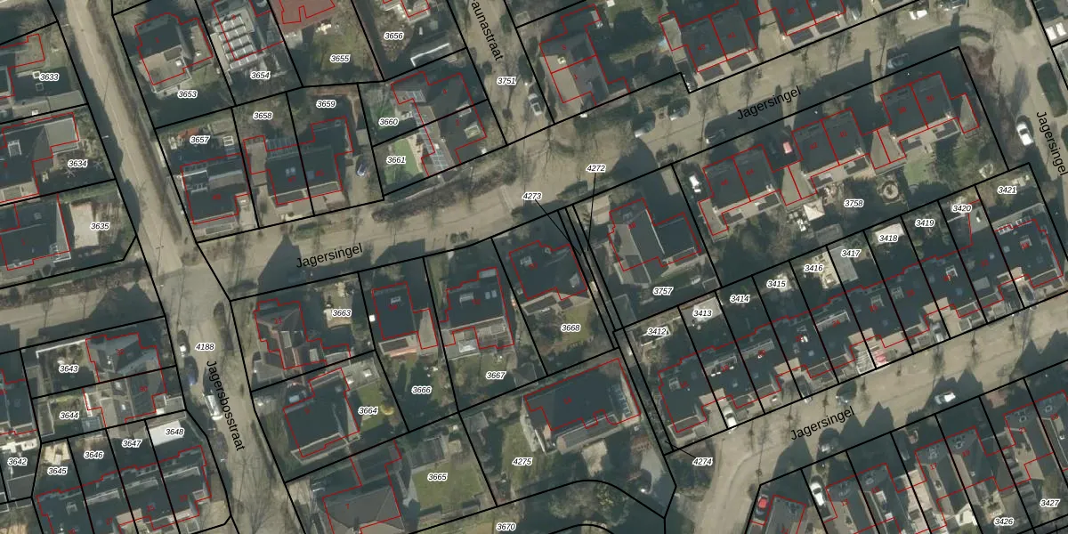 Het perceel waarop Jagersingel 50 staat heeft een oppervlakte van 378 m². Dit is een groot perceel. De perceeloppervlakte wordt geregistreerd door het Kadaster. Gedetailleerde informatie over de maten van dit perceel kunt u vinden in het rapport Kadastrale kaart met maatvoering van Jagersingel 50.