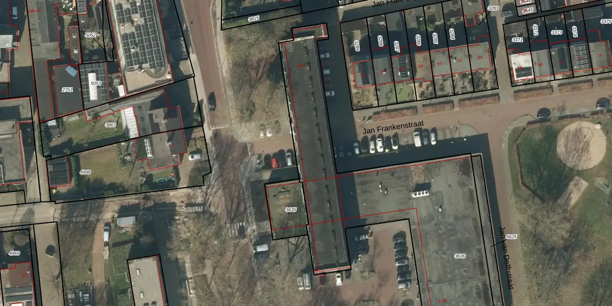 Het perceel waarop Jan Frankenstraat 12 staat heeft een oppervlakte van 4670 m². Dit is een zeer groot perceel. De perceeloppervlakte wordt geregistreerd door het Kadaster. Gedetailleerde informatie over de maten van dit perceel kunt u vinden in het rapport Kadastrale kaart met maatvoering van Jan Frankenstraat 12.